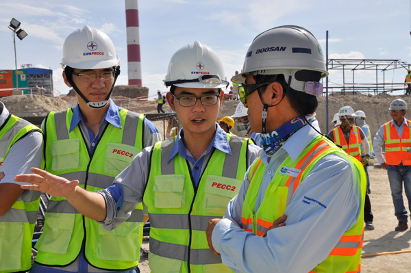 Các kỹ sư trẻ PECC2 cùng trao đổi với đối tác Doosan trên công trường Vĩnh Tân 4