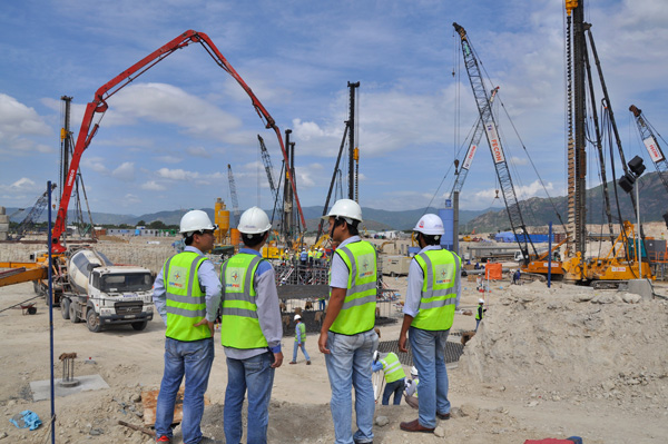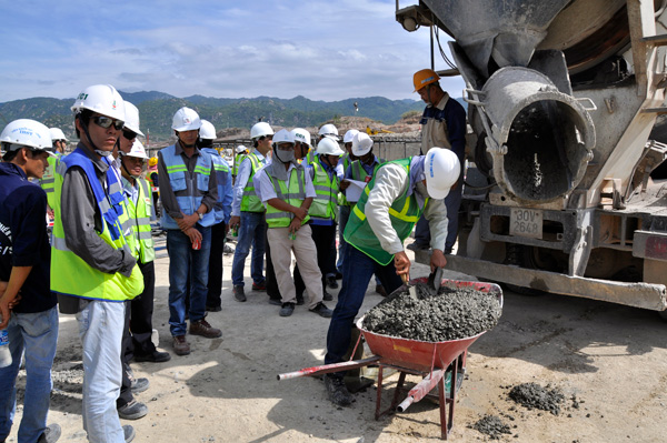 Các kỹ sư PECC2 trên công trường dự án Nhiệt điện Vĩnh Tân 4 ngày đổ mẻ Bê tông đầu tiên