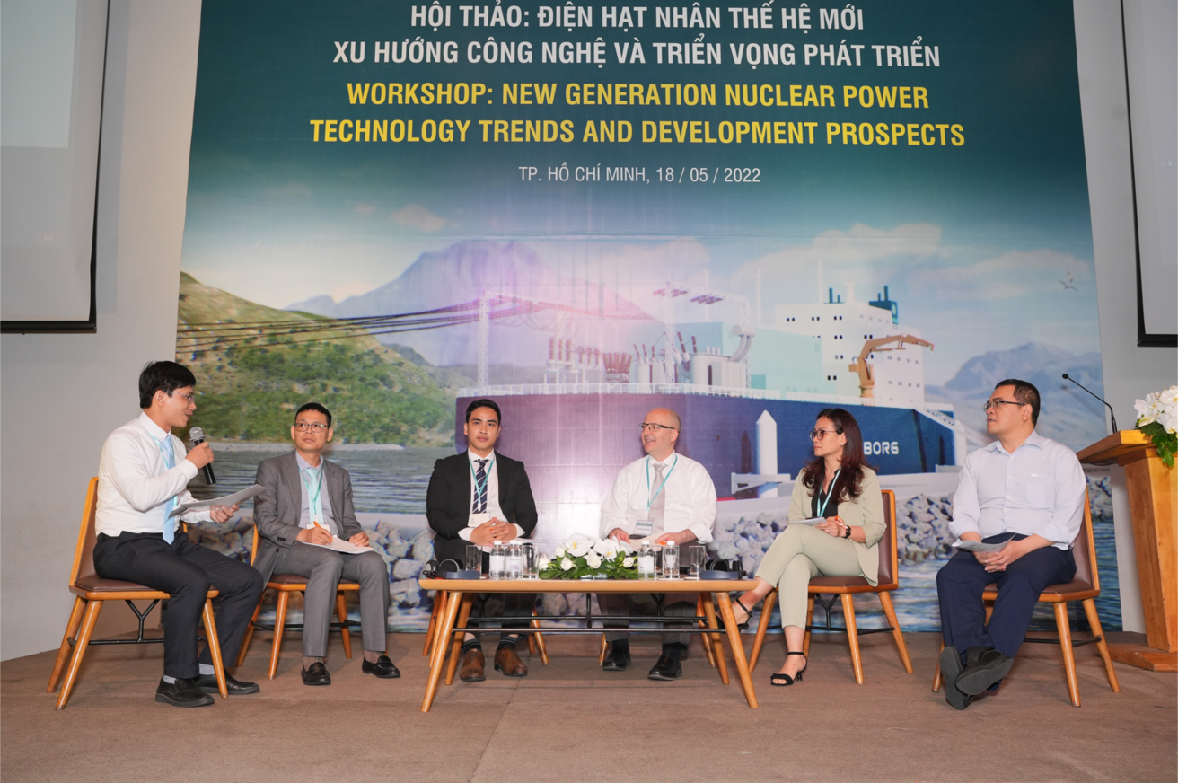 Xuyên suốt chương trình hội thảo là 7 bài tham luận được trình bày bởi các chuyên gia là những đại diện đến từ PECC2, Seaborg, Siemens Energy Việt Nam, Viện Năng lượng Nguyên tử Việt Nam (VINATOM), Cục Năng lượng Nguyên tử (VAEA) và Trường Đại học Luật TP.HCM. Nội dung hội thảo xoay quanh các chủ đề về: mục tiêu phát triển năng lượng xanh và cam kết phát thải CO2 bằng 0 vào năm 2050 tại Hội nghị thượng đỉnh về biến đổi khí hậu của Liên Hợp Quốc lần thứ 26 (COP26); xu hướng phát triển công nghệ lò phản ứng mô-đun nhỏ (SMR) trên thế giới; công nghệ nhà máy điện hạt nhân nổi (MFPP) sử dụng lò phản ứng muối nóng chảy kích cỡ gọn (CMSR) của Seaborg và triển vọng ứng dụng; công nghệ sản xuất hydro bằng phương pháp điện phân của Siemens và tính hiệu quả khi kết hợp với điện hạt nhân; cơ sở hạ tầng cho phát triển điện hạt nhân; luật quốc tế và một số quy định liên quan đến nhà máy điện hạt nhân nổi. Sau các bài tham luận với những thông tin bổ ích và thiết thực, các khách mời và diễn giả đã có phần thảo luận, trao đổi thẳng thắn và sôi nổi về các vấn đề liên quan đến chủ đề trên.