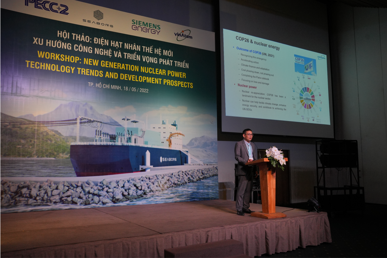 Nắm bắt xu thế chuyển dịch năng lượng xanh, năng lượng sạch đang diễn ra mạnh mẽ trên toàn cầu dưới sự tác động của biến đổi khí hậu và khan hiếm nhiên liệu, PECC2 đã hợp tác với Seaborg – là một công ty khởi nghiệp của Đan Mạch đang phát triển Lò phản ứng muối nóng chảy kích cỡ gọn (CMSR), và Siemens Energy – là nhà sản xuất thiết bị năng lượng toàn cầu với các thiết bị sản xuất hydro bằng phương pháp điện phân sử dụng màng Polymer (PEM) hiện đại, tổ chức hội thảo quốc tế với chủ đề “Điện hạt nhân thế hệ mới – Xu hướng công nghệ và triển vọng phát triển” nhằm tạo diễn đàn để giới thiệu và thảo luận về các công nghệ năng lượng mới như: công nghệ điện hạt nhân thế hệ mới, công nghệ sản xuất và ứng dụng hydro.