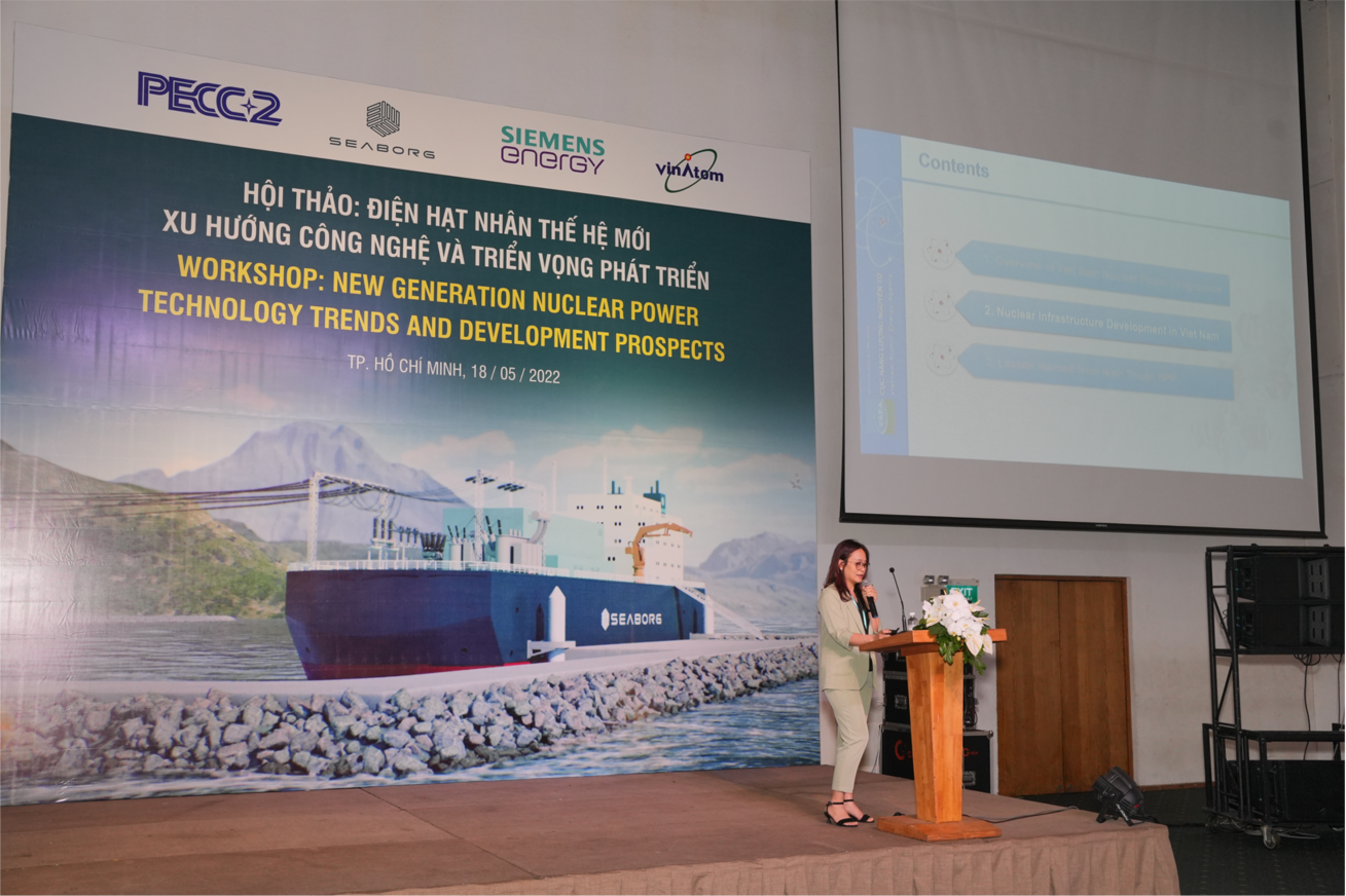 Việc tổ chức hội thảo quốc tế về các công nghệ phát điện mới, ổn định và thân thiện với môi trường là một trong những nội dung được nêu trong thỏa thuận hợp tác được ký kết giữa PECC2, Seaborg và Siemens Energy Global vào tháng 08/2021. Cũng trong khuôn khổ hợp tác giữa 3 bên, từ tháng 09/2021 đến tháng 01/2022, PECC2, Seaborg và Siemens Energy đã cùng nghiên cứu và hoàn thành Báo cáo đánh giá sơ bộ tính khả thi của việc triển khai dự án nhà máy điện hạt nhân nổi sử dụng lò phản ứng muối nhiên liệu nóng chảy, kết hợp sử dụng điện hạt nhân để sản xuất hydro và amoniac phục vụ cho nền kinh tế xanh trong tương lai.