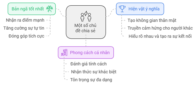 Để buổi hoạt động nhóm diễn ra vui vẻ và hiệu quả, chúng ta cần có một vài quy định chung. Ví dụ như, mỗi người đều có cơ hội chia sẻ, phát biểu ý kiến, chúng ta sẽ lắng nghe nhau một cách tôn trọng, và tất cả cùng cam kết tắt điện thoại để tập trung vào các hoạt động.