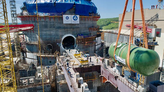 Hình 2. Thùng lò phản ứng VVER-TOI được đưa vào lắp đặt tại công trường nhà máy điện hạt nhân Kursk II (Nguồn: Rosenergoatom).