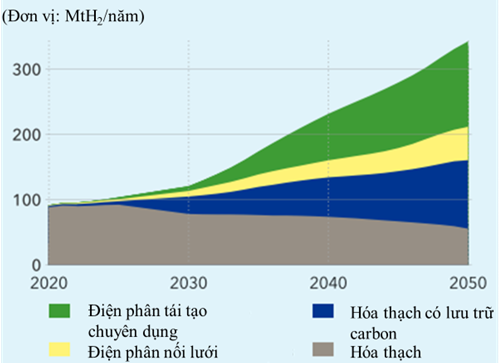 Hình 3. Sản lượng hydro thế giới theo công nghệ sản xuất.